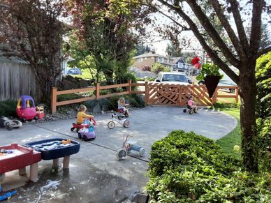 During the Summer, July to August we spend a lot of time outside with water tables, sprinklers, bubbles, teeter totters, cars and scooters. We also do summer theme crafts.